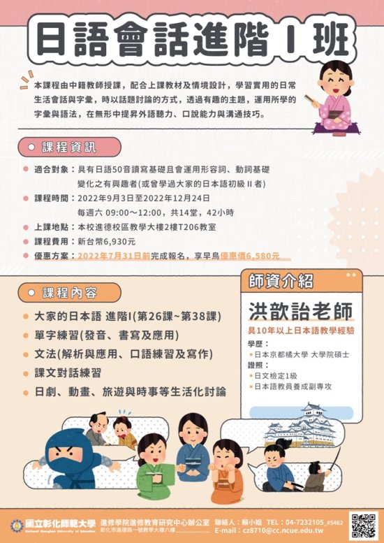 四、報名規定及其他課程資訊請詳閱各課程招生簡章,如有相關問題,請逕向簡章中聯絡人洽詢。