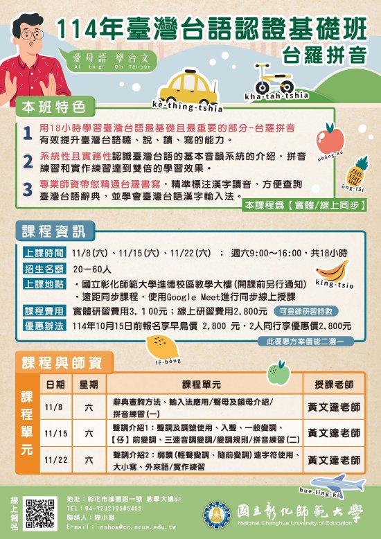 二、「114 年臺灣台語認證基礎班-台羅拼音」