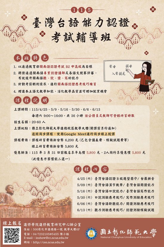 二、「115 年臺灣台語能力認證考試輔導班」