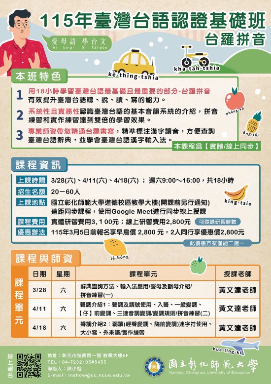 一、「115 年臺灣台語認證基礎班-台羅拼音」